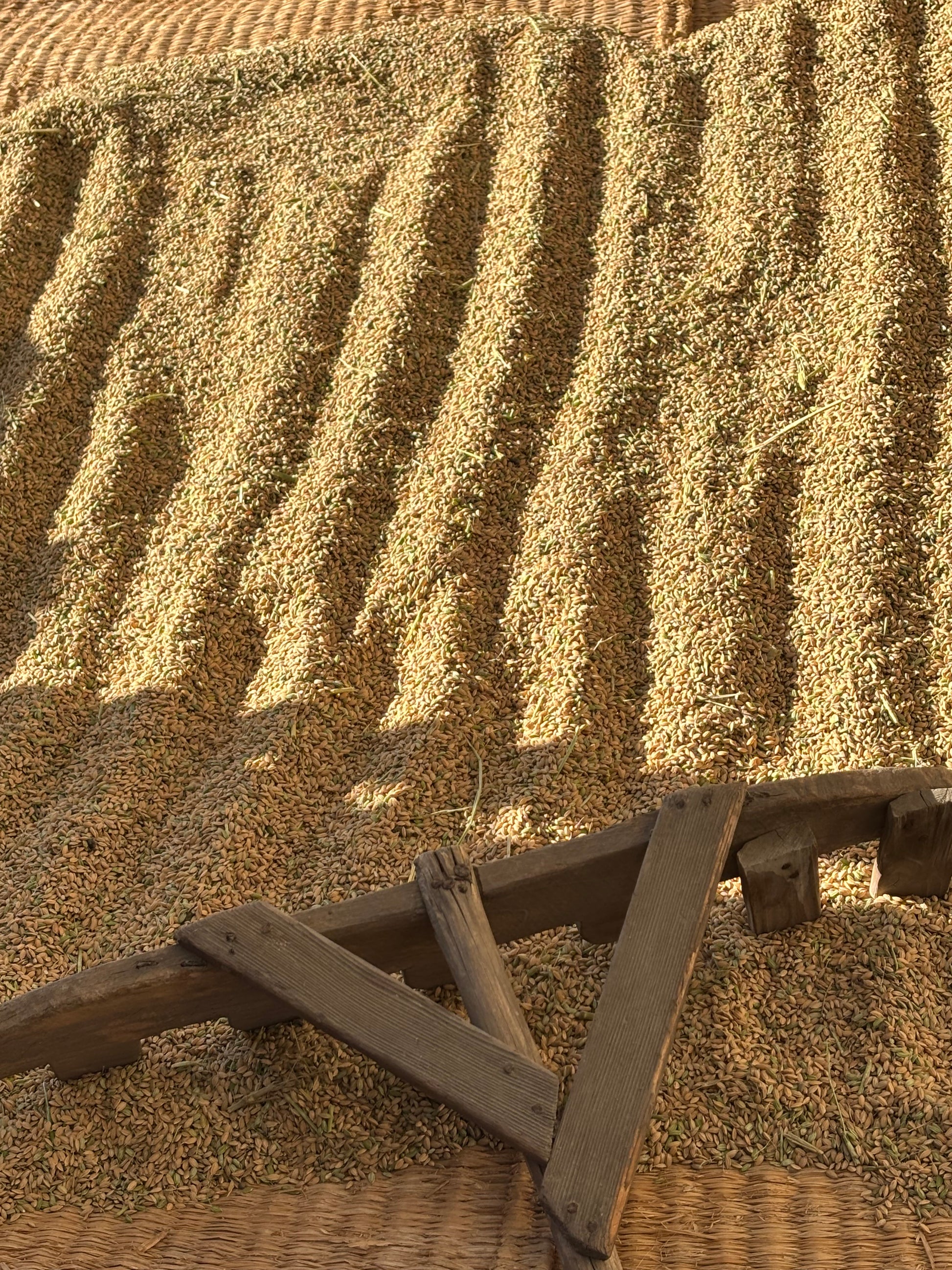 乾燥工程では、お米乾燥機(ボイラー乾燥)を使用せず、天候を見ながら自然乾燥で仕上げています。生産者は、「天日干しにすることで、乾燥時に使われるガスの匂いがお米に移りにくいと感じている」と話しています。